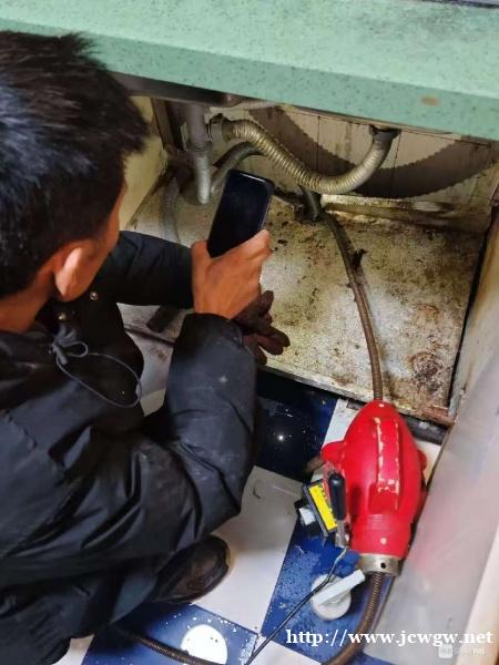 2.二次处理采用高压清洗车把沉淀的粪便和污泥稀释,将化粪池底部隐藏的有毒气体排出,然后将化粪池内的污水排出,再次检测池内是否有有毒气体。